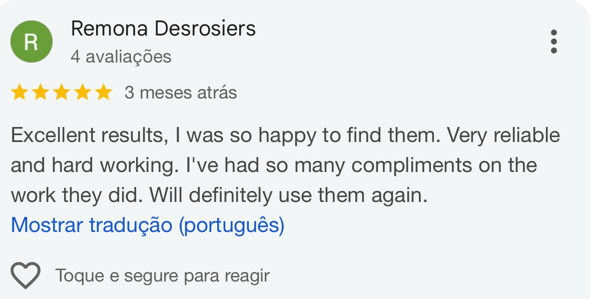 Excellent results, I was so happy to find them. Very reliable and hard working. I’ve had so many compliments on the work they did. Will definitely use them again.